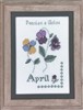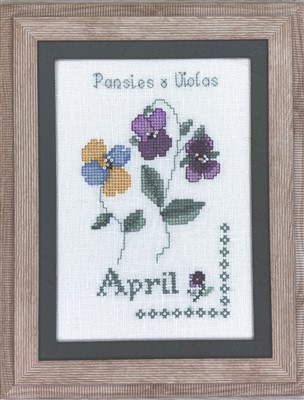 For April we have these beautiful Pansies and Violets. It is stitched using cross stitch, backstitch, French knots and seed bead pearls.