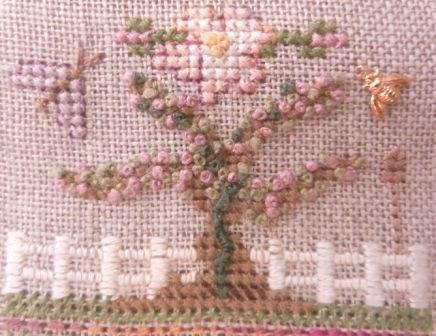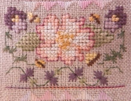 This exquisite little needlefold is created from a band sampler worked in counted cross stitch, Hardanger embroidery and a few additional counted stitches. We have made a little covered magnet which is attached to the needlefold with narrow linen band.