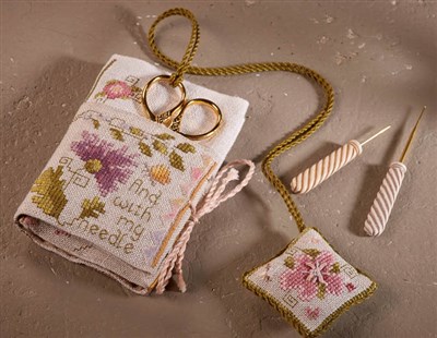 This pack includes linen bands, linen, pre-sorted threads, scissors, gold plated needles, eyelet band, lining, chart and instructions.