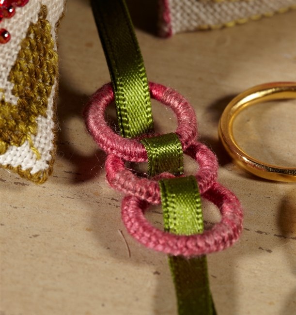 Originally designed as a linen class here at Pinks Barn, the Petite Fleur Trio is now available as a complete kit. The Petite Fleur Purse is worked in stranded cottons, seed beads and has a folded hem with ribbon tie. The tie is weighted with a pin keeper including a strong magnet. The Beaded Watbo is worked on linen and is completed with a ribbon and covered brass rings.