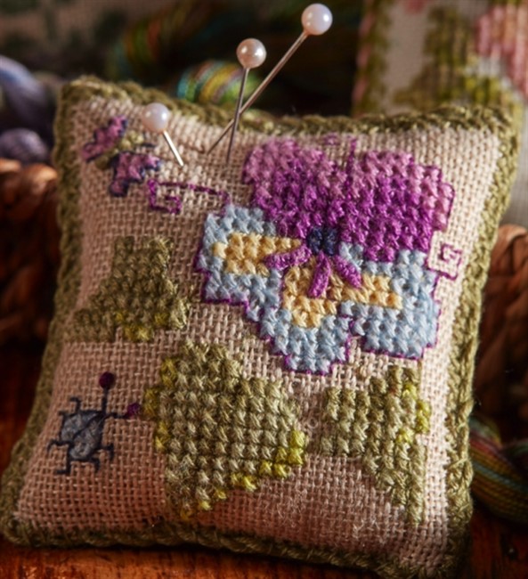 This pretty pincushion is one of a collection designed by Jane Greenoff, which we call Jane's Smalls. It is worked in counted cross stitch with an optional twisted cord edging. This pack includes the chart, instructions, wrapped needle, threads and fabric. The pins are not included.