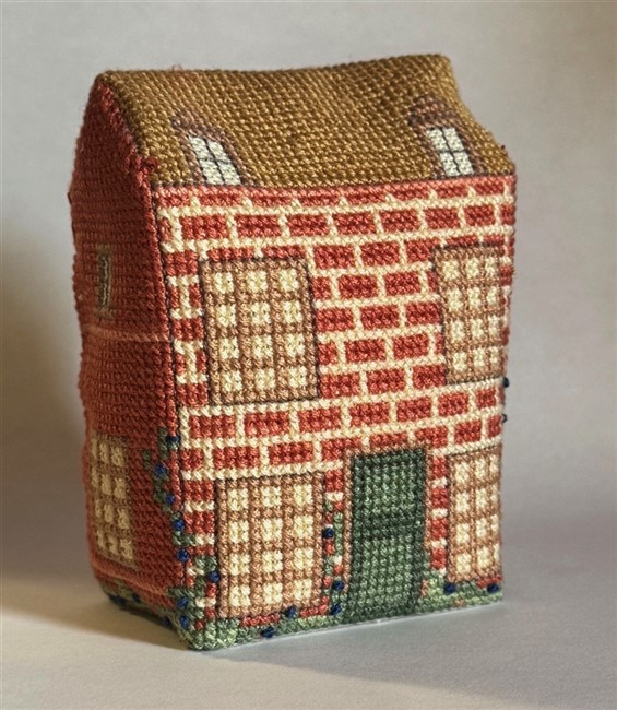 The Red brick Gouse pincushion is one a series of three-dimensional house pin cushions orgiinally featured on Sewing street shopping channel monthly in 2025. It can be stitched on either 28-count linen or 14-count Aida fabric.