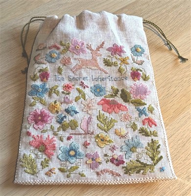 The Secret Inheritance Sweete Bag is a beautiful design inspired by the front cover of Jane's memoir "Following a Thread" and made into a sweete bag. The bag is large enough to keep the book in, if you wish, or to have as an heirloom. The kit is in counted cross stitch on your choice of 14-count Aida or 28-count linen fabric. It includes, the fabric, pre-sorted threads, gold-plated needle, both black & white and colour charts, and illustrated instructions. The Sweete bag is finished by hand.