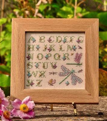 This pretty, colourful alphabet sampler may be stitched on linen or Aida fabric and includes counted cross stitch and a few embellishment stitches.