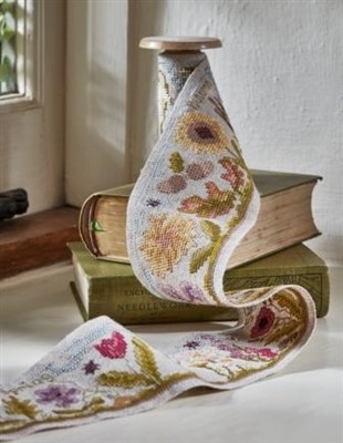 Jane says... "Continuing the theme of a band sampler rolled away, I thought this would be a novel way to create a sampler, which could, of course, be wrapped around a silk covered box if preferred to our wooden bobbin. I suppose I can trace the beginning of this idea to a visit to Cotswold Lavender last summer where many of the fields were set aside as flowery meads and simply took your breath away!"